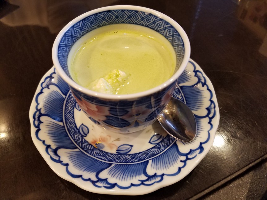 The matcha latte was smooth and rich. The pudding was refreshing. It had a jello-like texture. It was not too sweet, and the matcha sauce gave it a nice tea flavor.