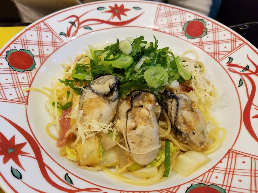 The menu is seasonal, and the English menu is available. There is a special set menu where you can have two different pasta (obviously at a smaller amount each), a drink, and a dessert for 1340yen. I ordered the Pollock roe & shrimp with cream sauce pasta, duck pasta with cream sauce, matcha latte, and pudding with taro ice cream. My sister decided to go with the a la carte menu and ordered the oyster with leek and scallion pasta in ginger butter sauce. The pasta was all delicious, each with its unique Japanese flavor. The ingredients were very fresh.