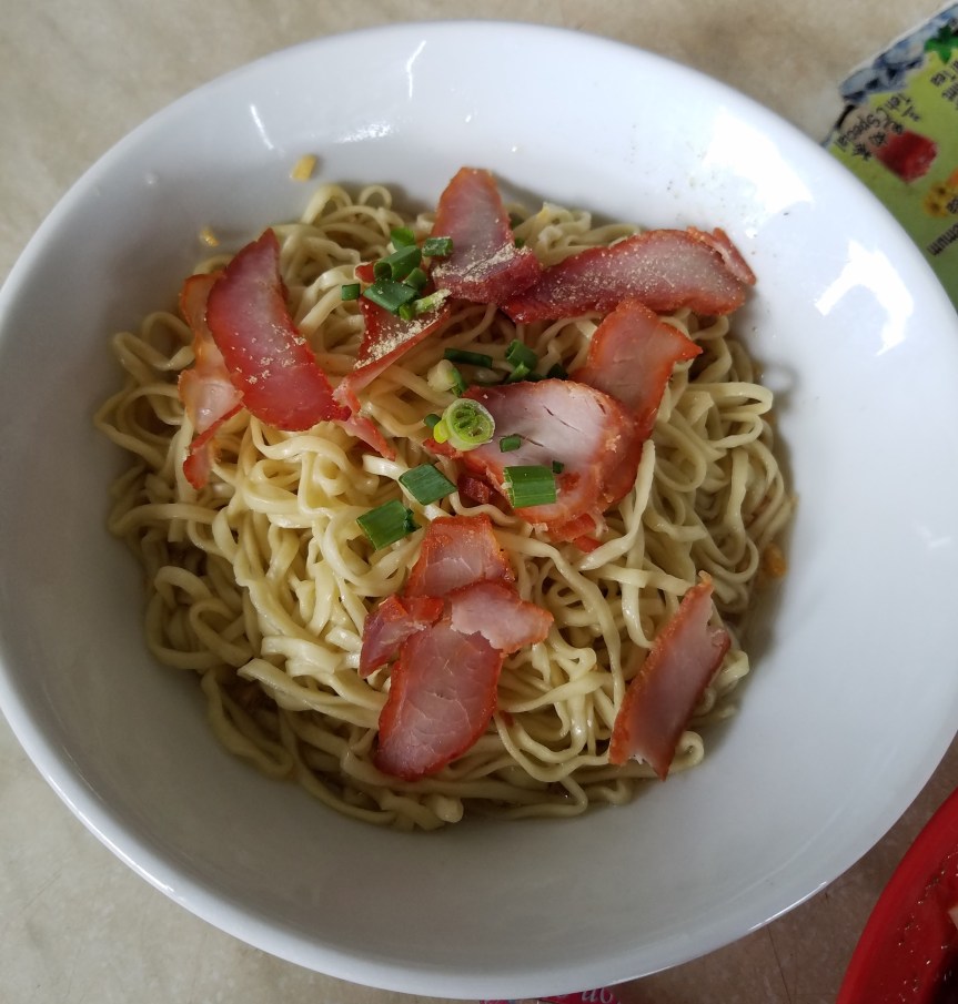 Kolo mee is a signature Kuching dish. It is dry egg noodles in a light sauce topped with minced pork, shallots, fried onion, slices of char siew (barbecued pork), and white pepper. It is a must-have whenever I visit. My mother, who is from Kuching, says that one of the best and authentic kolo mee is at the expert food court. The map below shows the exact location of the food court. The expert food court is not available on google maps but I’m guessing the vegetarian foods stall is located within the expert food court.