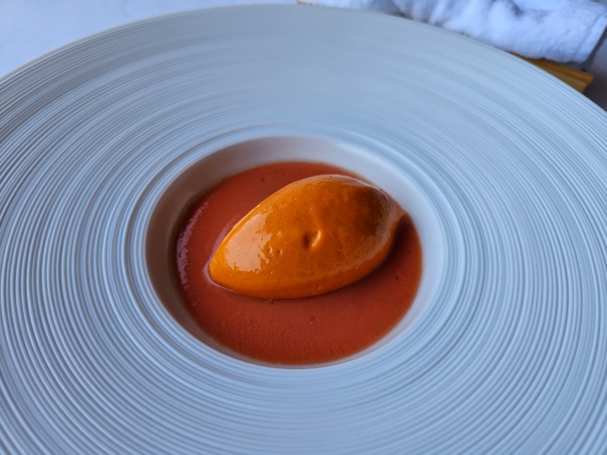 Red pepper mousse with tomato coulis