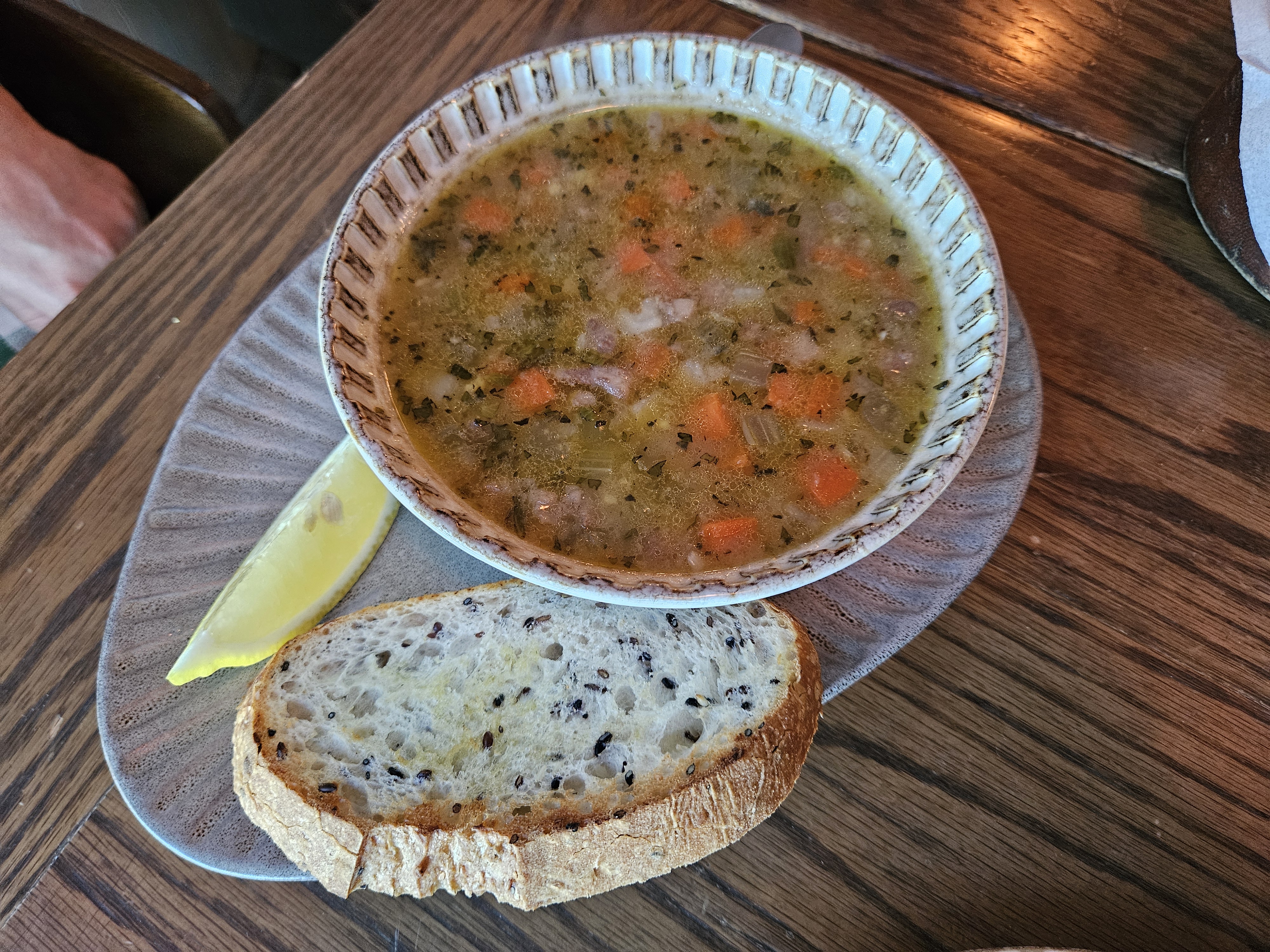 The beef soup with potato and carrot was a simple yet deeply comforting dish. It offered a satisfyingly hearty meal, and its rich flavors and wholesome ingredients made it quite filling.