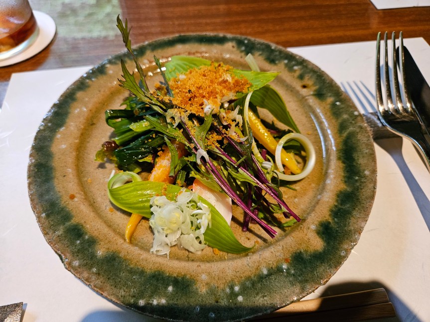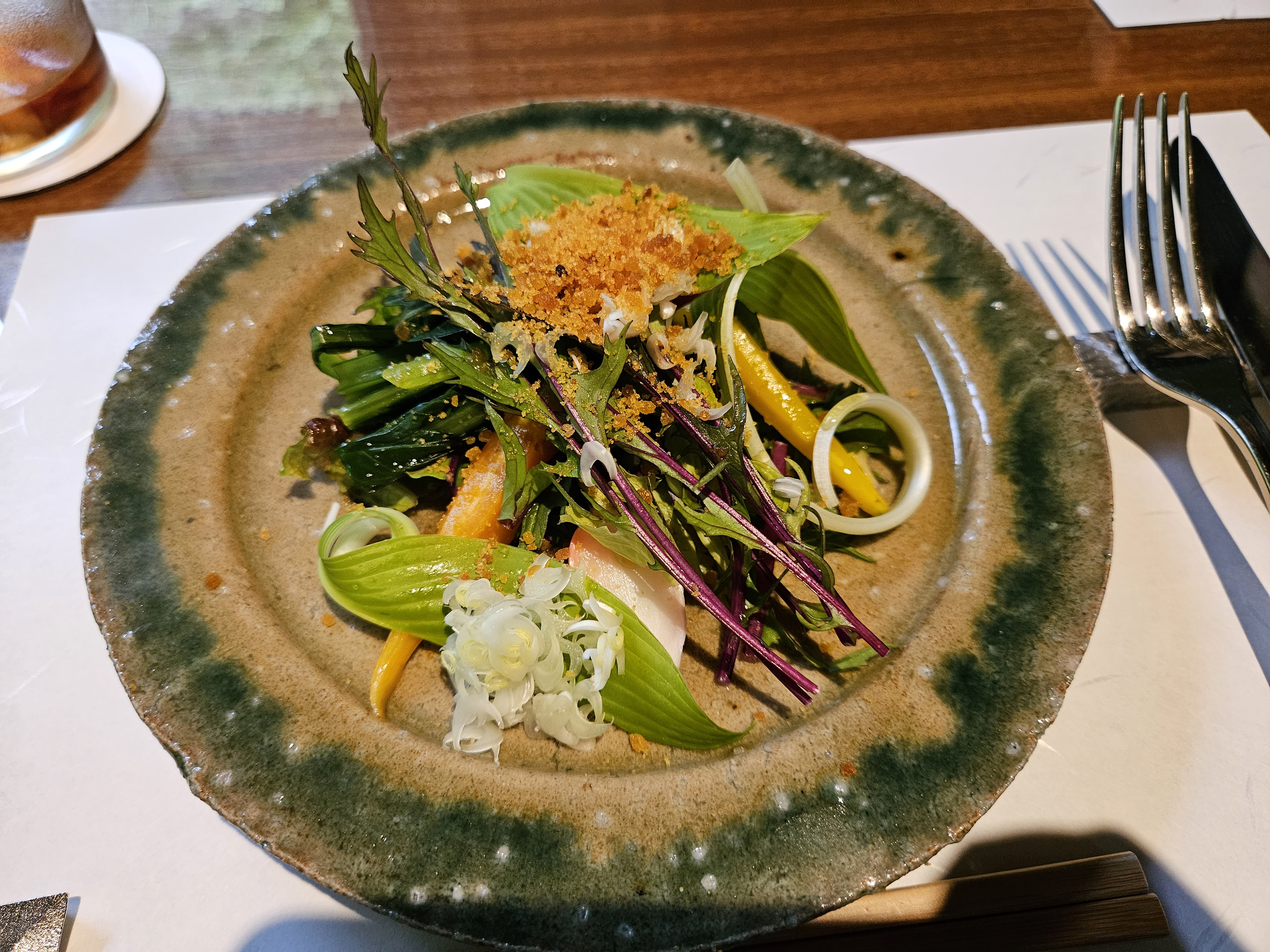 The salad was a delightful surprise, offering a captivating mix of flavors. Its vibrant colors made it incredibly enticing, while the addition of roe provided a rich umami flavor and added depth to the dish.